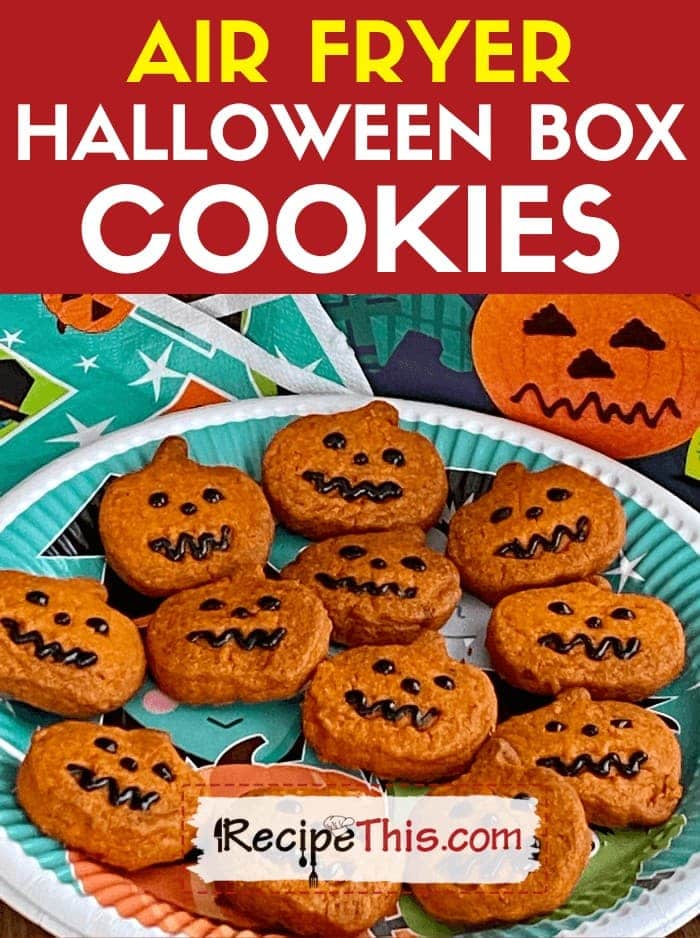 If you want a super simple way to bake with your kids on Halloween, then buy a box mix and air fry spooky cookies and orange pumpkin cookies.