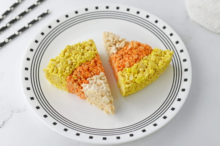 Whether you love or hate candy corn, you will love these candy corn treats. These fun treats include gooey marshmallows but no actual candy corn pieces (unless you want to add them for added flavor).