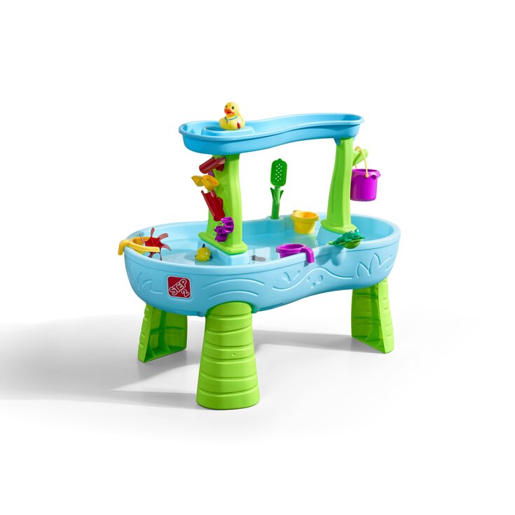 Kids can beat the summer heat and make it rain with this water table. Using the large bucket, little ones can scoop water from the pond or utilize the rain shower effect for realistic rainfall.