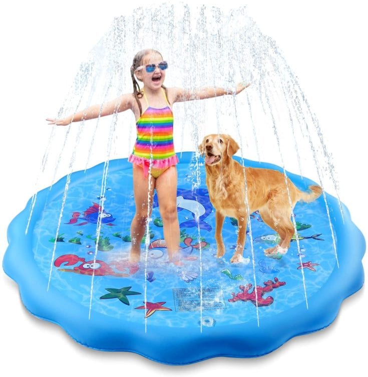 This inflatable play mat measures 68" in diameter with gentle water sprays come from the squishy water-filled border and fill the shallow pool, providing ample room and enough splash for toddlers and their friends together!