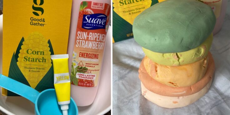 This cloud dough is soft, fluffy, and super fun to play with. Make it in one color or multiple colors, add in cookie cutters and loose parts and play indoors for hours of fun.