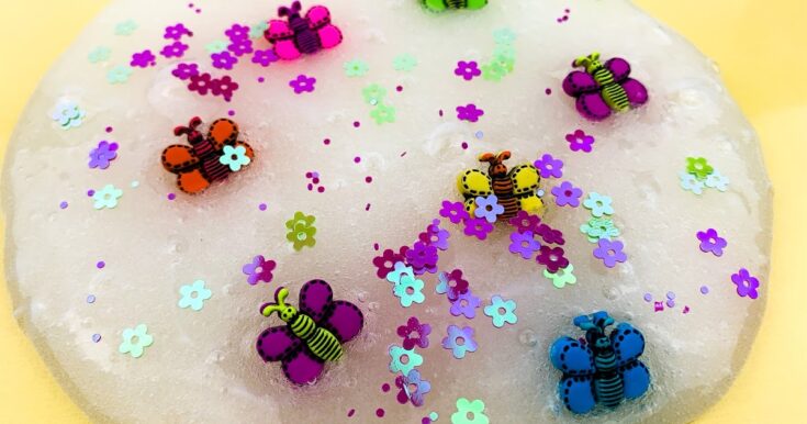 Get ready for spring with this beautiful sparkly butterfly slime. This fun sensory activity will delight little ones and older kids will enjoy playing with the butterflies and making up stories. It can be a great way to learn too!