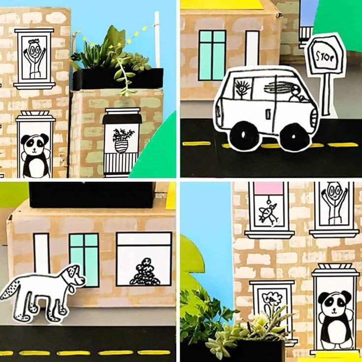 Take this classic cardboard box city-building activity to the next level with imaginative drawing and storytelling prompts guaranteed to keep your kids busy creating!