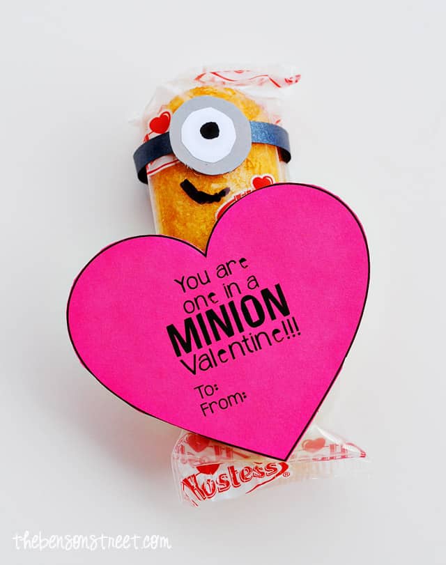 Printable Valentine tags with a simple tutorial for making minion Twinkies!
